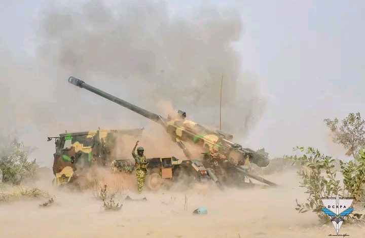 Sur le champ de manœuvre, le tonnerre des pièces d’artillerie a résonné, traduisant la détermination et la préparation constante des artilleurs du Groupement d’Artiellerie et du Bataillon d’Artllerie de Campagne et d’Intervention Rapide (BACIR).
