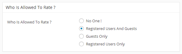 Choose who can rate ? Guests , Registered Users or both also you can disable this faeture by choosing No One !