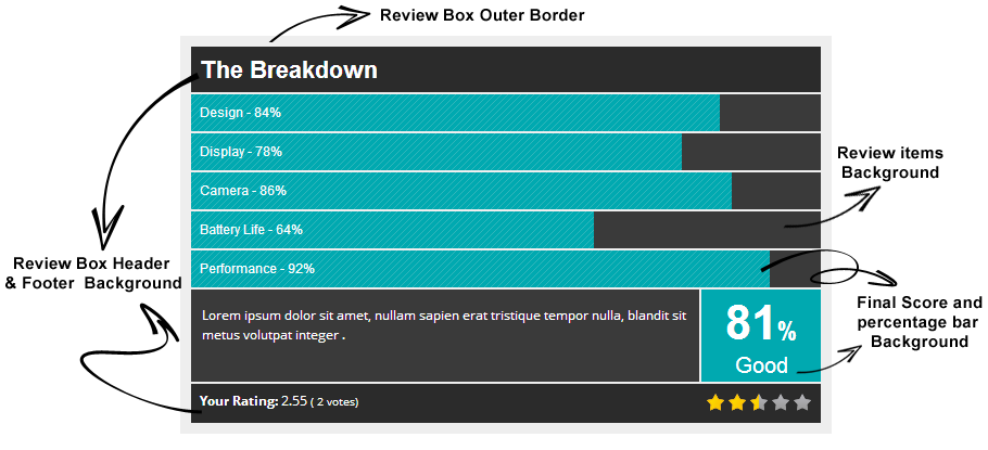 From Styling Tab you can chnage all colors and backgrounds of the Review box .