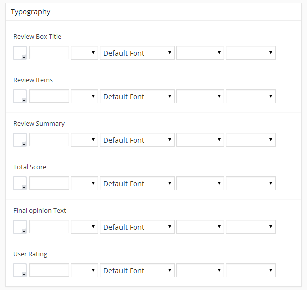 From Typography Tab you can chnage all fonts , size , weight and colors for the review box elements .